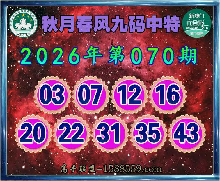 070期:《秋月春风》 ♣️九码中特♣️开:25